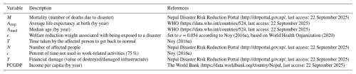 To represent exposure and socioeconomic impacts, we introduced a variable for population and for the “life year index” (LYI) (Noy, 2014, 2016a, b), a unit of measurement used to describe a disaster's impact in terms of the total years of life lost (see Sect. 2.3.1 for details). To predict the LYI, we applied XGBoost (eXtreme Gradient Boosting) (Chen et al., 2018; Chen and Guestrin, 2016). The predictor and response variables of the ML framework are described in the subsections below.