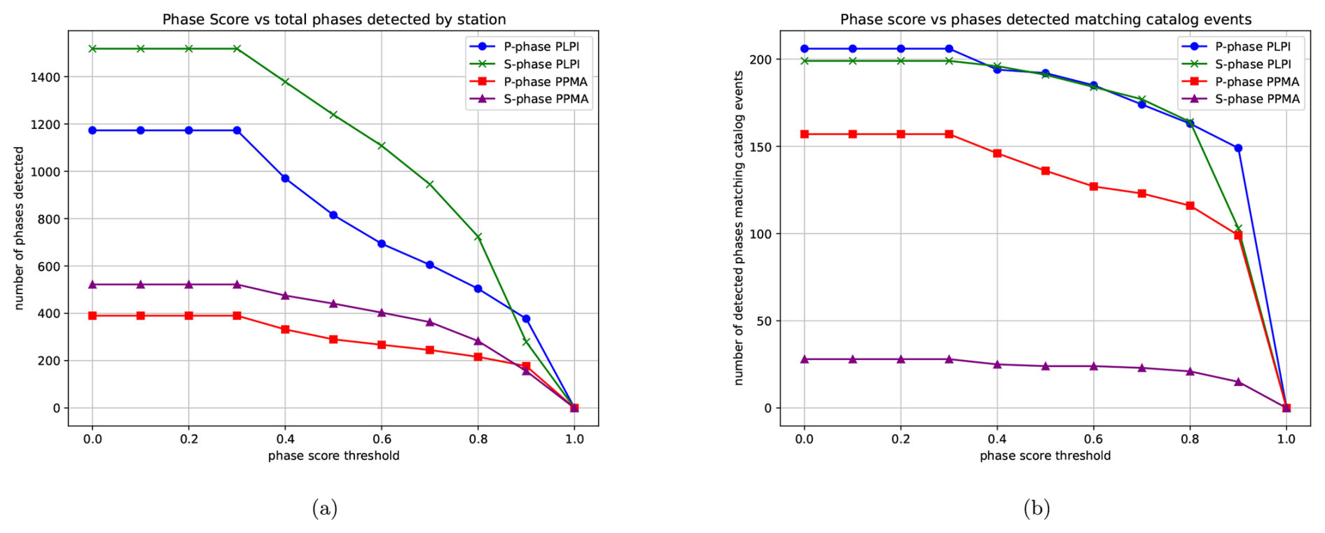 PhaseNet is a neural network-based system designed for automatic phase picking of seismic events. It detects and labels seismic phases and estimates the probability of each phase type (P and S) across the trace. After analyzing the two seismic stations, PLPI and PPMA, for 12 September 2021, 1173 P phases and 1518 S phases were obtained for PLPI, and 390 P phases and 522 S phases were obtained for PPMA.