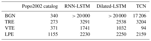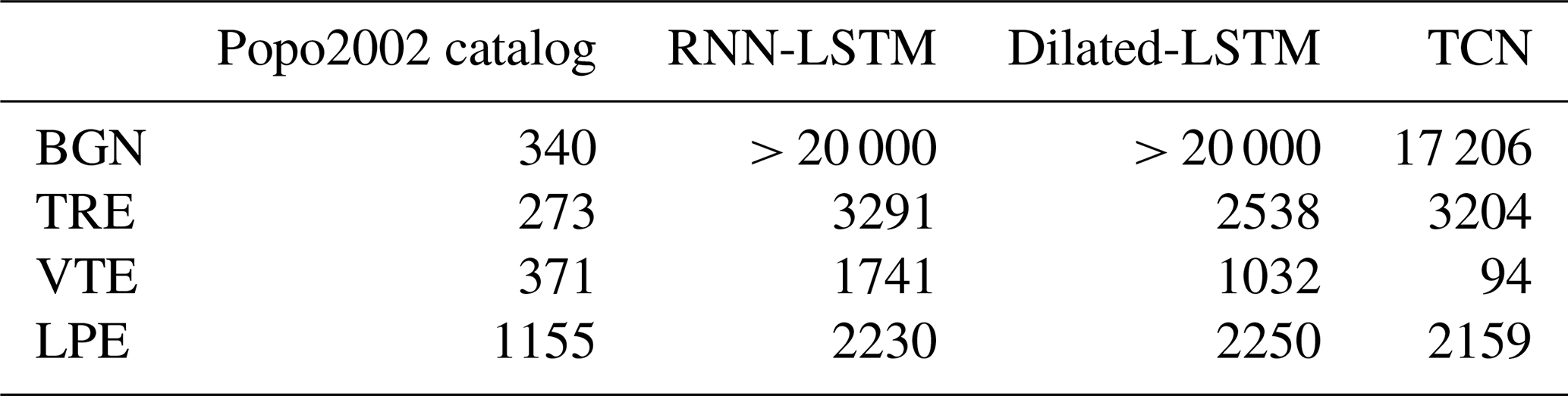 Table 8Comparison between the events initially annotated in the catalog and the events detected by the new automatic systems following the implementation of a weakly supervised approach.