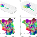 Which results in a transformed Z matrix, where each column represents an independent principal component. For dimensionality reduction, matrix Z gets truncated, in the case of our study keeping only the first three columns (ZT). The final truncated ZT matrix can be plotted as a 3-D point cloud. In our analysis, we used the scikit-learn implementation of the PCA algorithm (Pedregosa et al., 2011).