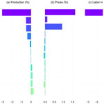 Figure 9 depicts the changes in output by sector. Our findings reveal that the production in agriculture, forestry, and electricity sectors all experienced negative impacts due to the direct effects of multi-hazards. Among these sectors, the forestry sector suffered the most significant loss of 3.04 %. The production of electricity decreased by 0.50 % relative to the business-as-usual case, and the agriculture sector experienced a 0.51 % reduction. Meanwhile, the lowered output in these directly impacted sectors led to an increase in the prices of the products (Fig. 10). Notably, the domestic price of forestry goods increased by 1.64 %, electricity price increased by 0.93 %, and the prices of agricultural goods rose by 0.12 %.