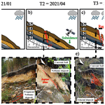 Moreover, an exhaustive analysis of the geomorphological changes resulting from the event was conducted. A detailed survey of the stratigraphic column was conducted at three key points (Points c1, c2 and c4 in Fig. 2B). Firstly, a stratigraphy sequence at the base of the debris flow was generated, obtaining the deposit sequence and assessing previous non-documented events. Secondly, a survey was conducted in the headscarp area where the event was initiated, evaluating the geological and geomorphological conditions that led to its generation. This approach allowed for the characterisation of the strata and structures in the affected area, seeking insights into the triggering mechanisms of the flow. Additionally, a detailed evaluation of the lateral erosion caused by the flow was carried out to understand the impact of local geomorphological changes as proxies for similar glacial-volcanic environments (Bucher et al., 2024). Finally, we assessed changes in vegetation that occurred as a result of the 31 May event and its subsequent reactivations (Fig. 2B), allowing the estimation of the evolution of the landscape.