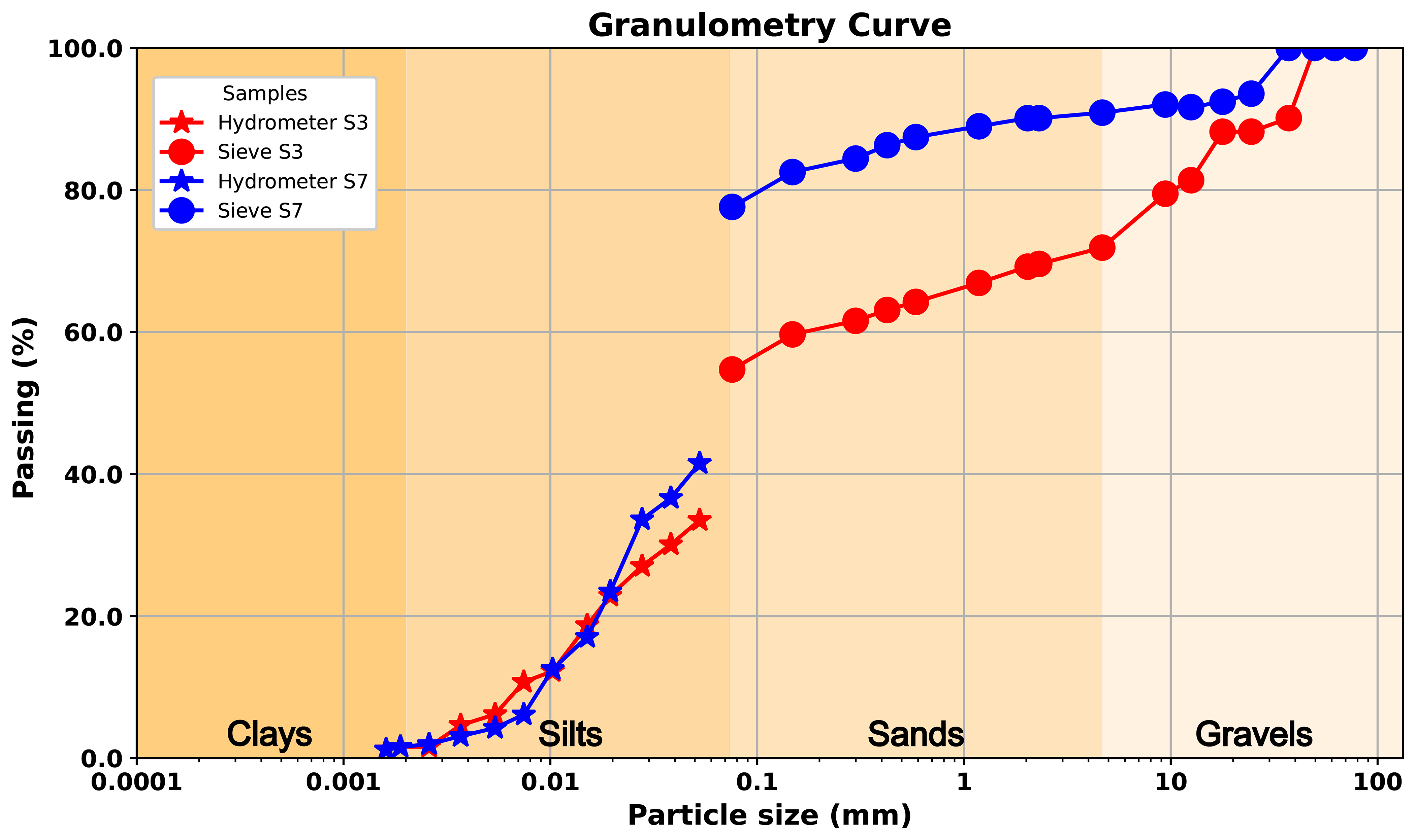 Figure 6Soil granulometric curve of S-3 and S-7.
