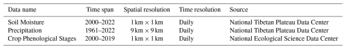China 1 km Soil Moisture Daily Dataset (2000–2022) based on station observations, National Tibetan Plateau Data Center (https://cstr.cn/18406.11.Terre.tpdc.272415, last access: 8 October 2024);