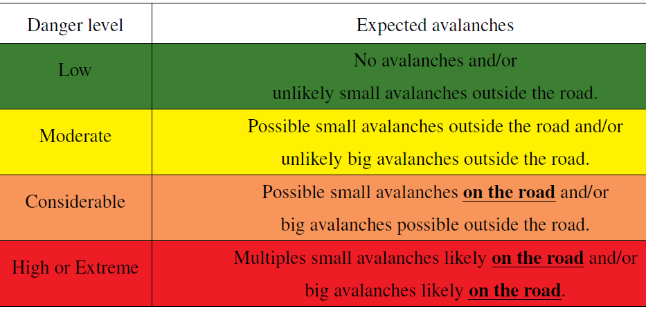 Statham, G., Haegeli, P., Birkeland, B., Greene, E., Israelson, C., Tremper, B., Stethem, C., McMahon, B., White, B., and Kelly, J.: The North American public avalanche danger scale, in: International Snow Science Workshop, Squaw Valley, 117–123, 2010. a