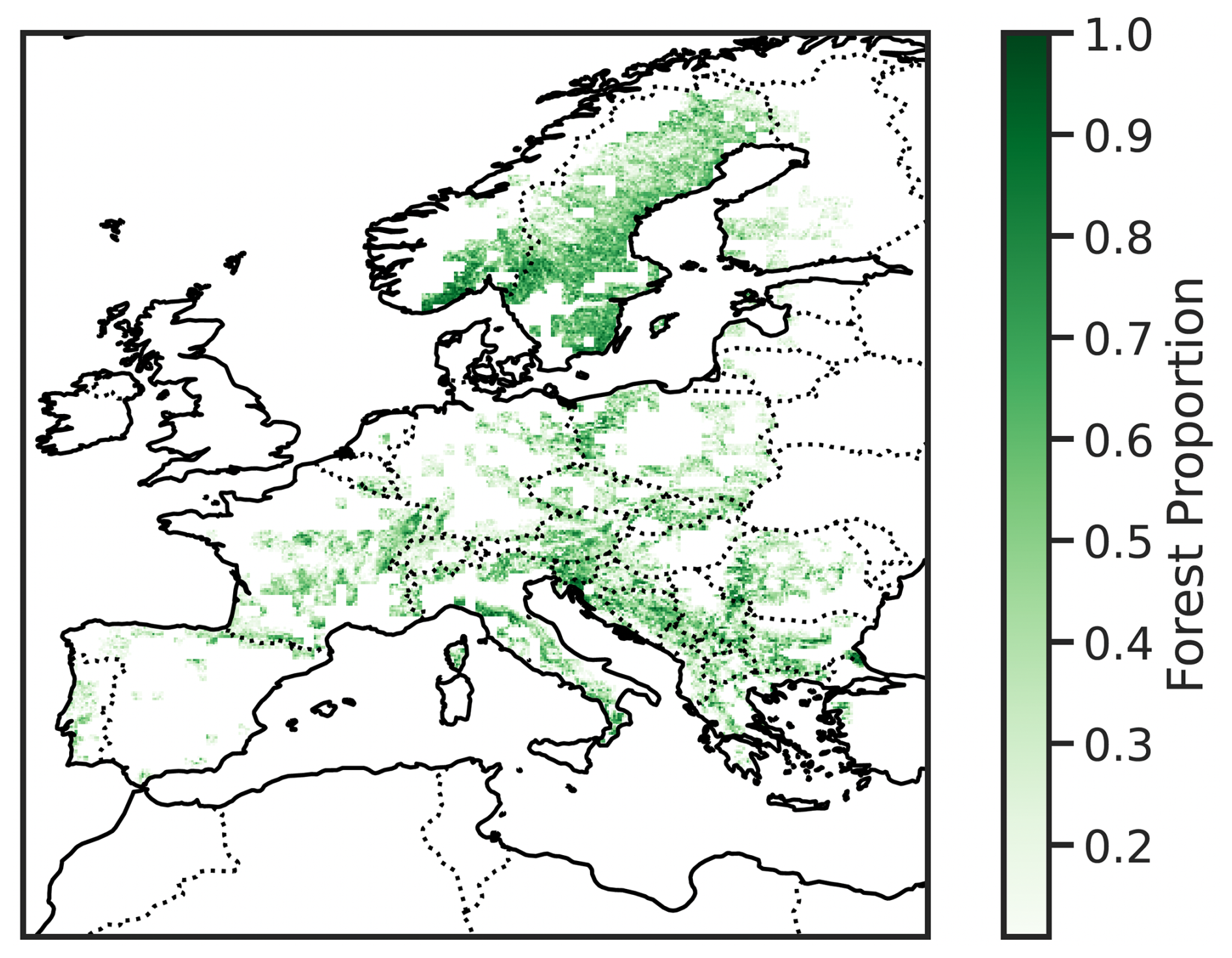 There is no specific region showing a lower skill. The Balkans and Sweden exhibit particularly large areas of high skill, for both metrics. We do not observe a dependence between model performance and the percentage of forest cover within the GP area (not shown). This supports the use of a 10 % threshold for forest pixel inclusion, which ensures sufficient representation of forested pixels while maintaining broad spatial coverage.