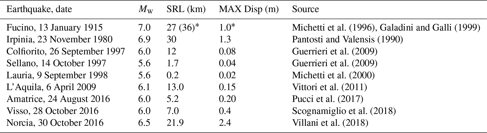 Cinti, F. R., De Martini, P. M., Pantosti, D., Baize, S., Smedile, A., Villani, F., Civico, R., Pucci, S., Lombardi, A. M., Sapia, V., Pizzimenti, L., Caciagli, M., and Brunori, C. A.: 22-kyr-long record of surface faulting along the source of the 30 October 2016 earthquake (central Apennines, Italy), from integrated paleoseismic data sets, J. Geophys. Res.-Sol. Ea., 124, https://doi.org/10.1029/2019JB017757, 2019.