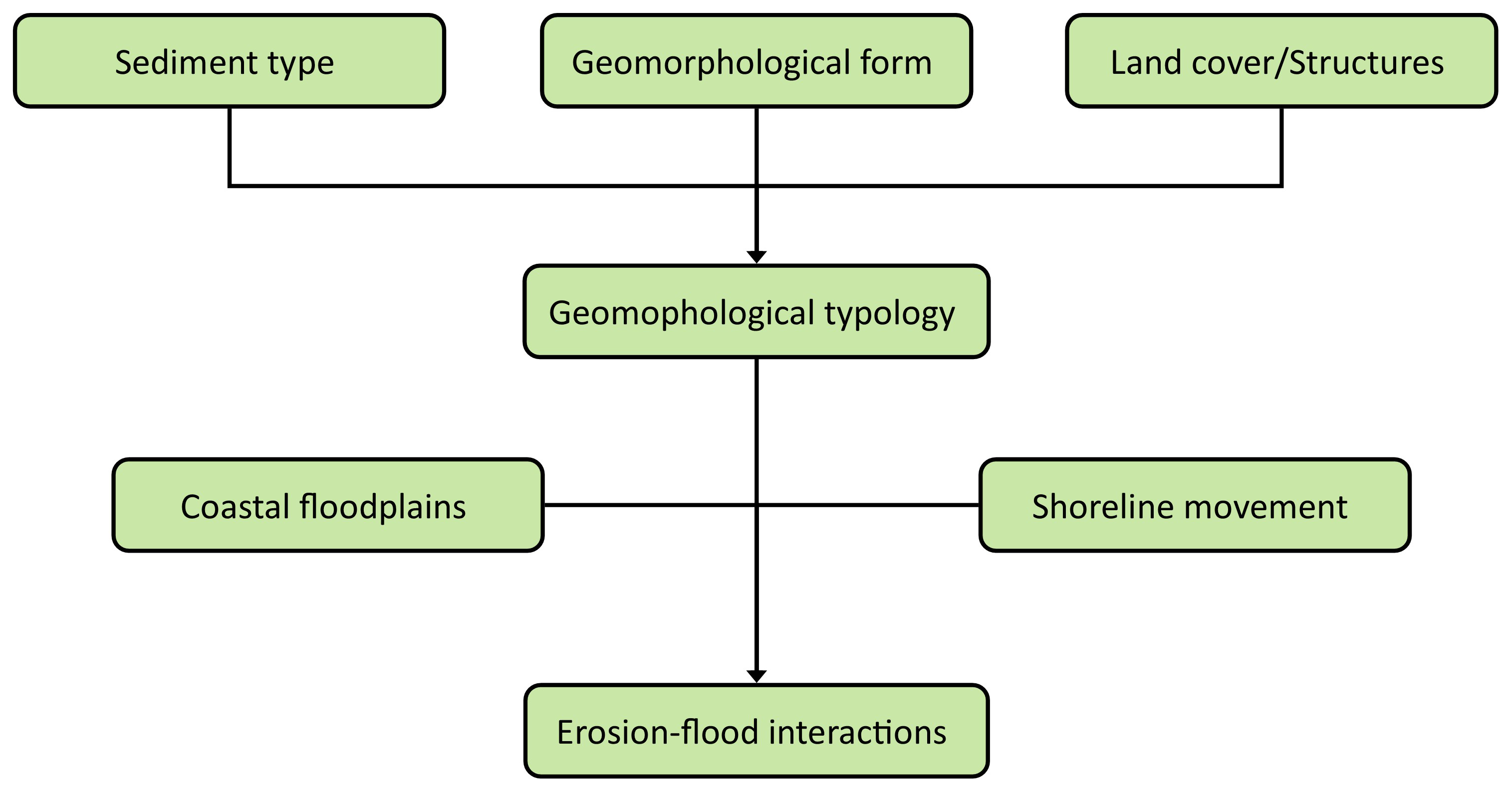Combining this data within a GIS environment, in addition to identifying flood/erosion interactions, allows for other spatial analyses such as sediment distribution. Section 3 further explains the development of the coastal typology and the datasets that are used to populate the CoasTER database.