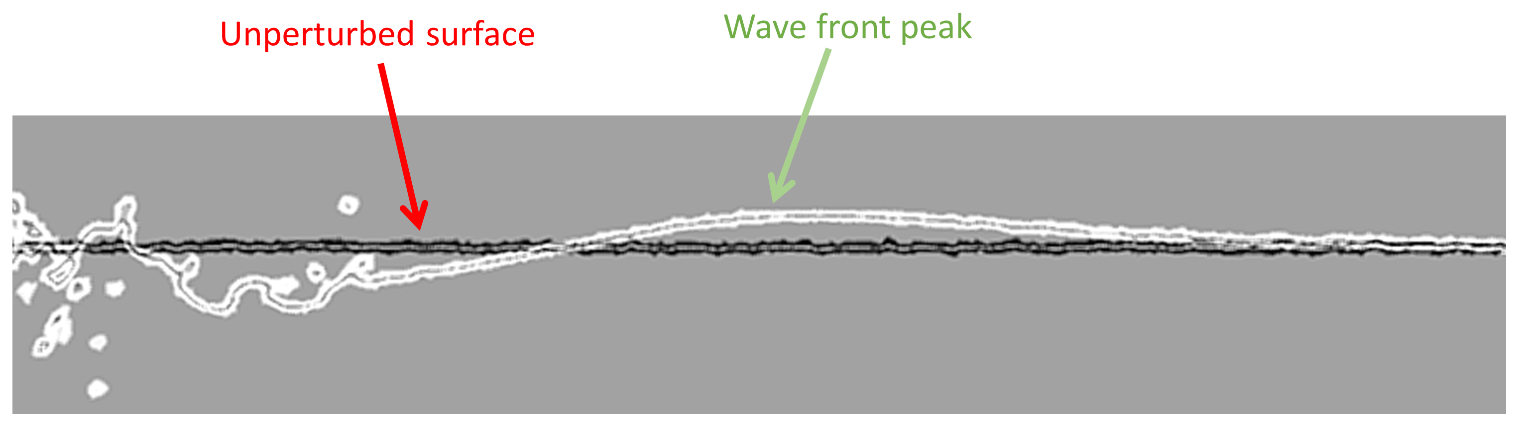 The wave amplitude was defined as the peak vertical displacement of the liquid surface relative to the undisturbed free surface level. Figure 13 illustrates a representative case, depicting the wave front propagation.