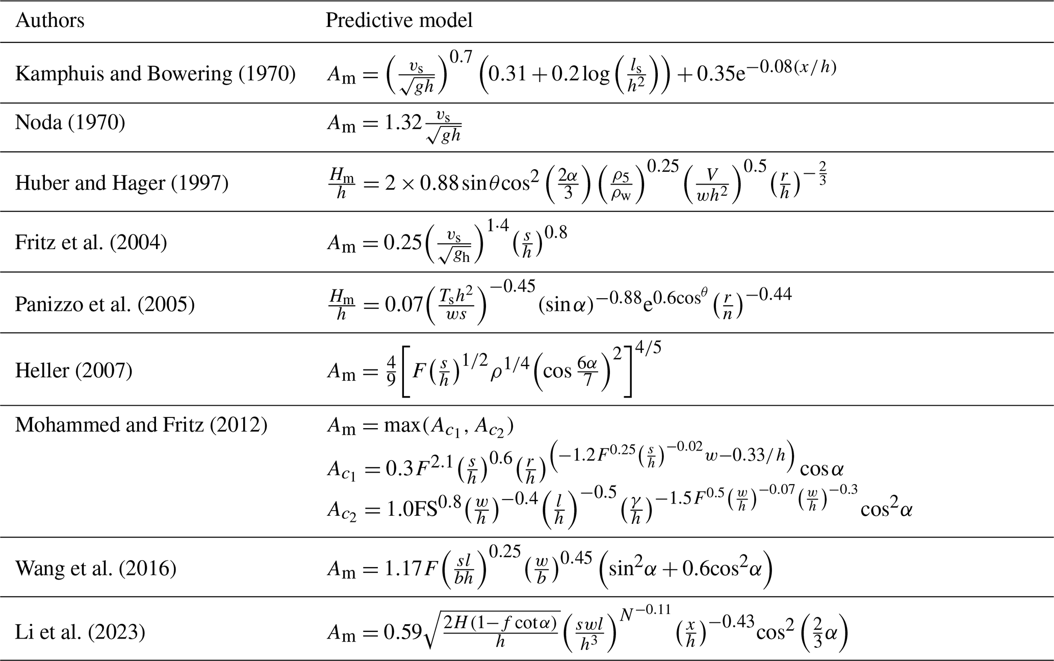 Table 1Historical overview of the prediction models for wave amplitude.