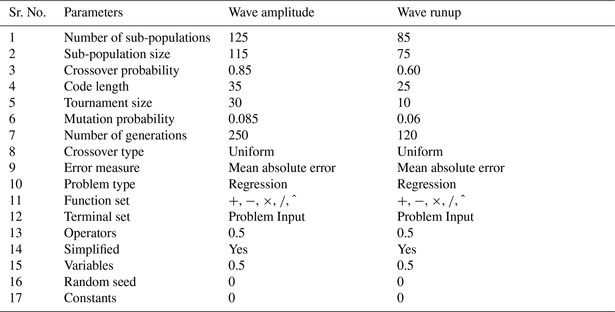 To address this gap, the current study uses Genetic Programming (GP), and specifically Multi-Expression Programming (MEP), to develop a data-driven prediction model for the wave amplitude and runup. This model is similar to living organisms, which can learn, adapt, and modify their composition, size, and shape (Gardezi et al., 2024). MEP is a cutting-edge, advanced form of GP that adopts a demonstrative model for programming and uses linear chromosomes to determine optimum population size, mutation probability, and evolutionary model. Compared to other ML models, it can produce more precise results even when the problem complexity is unknown (Usama et al., 2023).