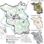 • The monitoring network is sparse. With only eight monitoring locations (or 12, as of December 2025), we cannot cover all relevant combinations of environmental characteristics (climate, vegetation, soil, groundwater depth), not to mention a full coverage of the state. In order to support risk assessment and management, however, the need for spatial upscaling, i.e. the prediction of soil moisture at unsampled locations, is evident. At this point, we would like to reiterate that the local bias correction is not readily transferable in space. Out of the limited number of evaluated products without bias correction or local calibration (Fig. 3a–d), the uncalibrated SWAP model clearly shows the highest potential (NSE of 0.68 across all locations). Homogeneous model input data such as soil texture, land use, depth to groundwater, and hydro-meteorological forcing are available for the entire state of Brandenburg. As a first upscaling application, Francke and Heistermann (2025) already used the model to assess the impact of climate change on groundwater recharge for five catchments across the state of Brandenburg. We should note, however, that the SWAP model is just one representative of physically-based hydrological models. In our opinion, the quality of the input data and the scale (horizontal and vertical resolution) of the model application are probably more important than the model itself. Furthermore, spatial upscaling might of course benefit from the combination of different data sources, i.e. from remote sensing and modelling, probably aided by machine learning. Certainly, the spatial prediction problem remains the main challenge ahead, and the CRNS-based monitoring data will be valuable for training and validating such efforts for the state of Brandenburg. And, undoubtedly, any such efforts will benefit from additional monitoring locations that would extend the diversity of site characteristics currently covered by the network.