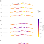 We compare the hypocenter depth distribution of the simulations with the probability density function (PDF) of the empirical hypocenter depth distribution for normal faults in Italy from Mammarella et al. (2024) (Fig. 6). The hypocenter depth distributions modeled are generally consistent with the empirical ones for all models. Among those, the connected models, especially those with listric geometry (L), show the best agreement, with coincident peak hypocenter depths between 6 and 9 km.
